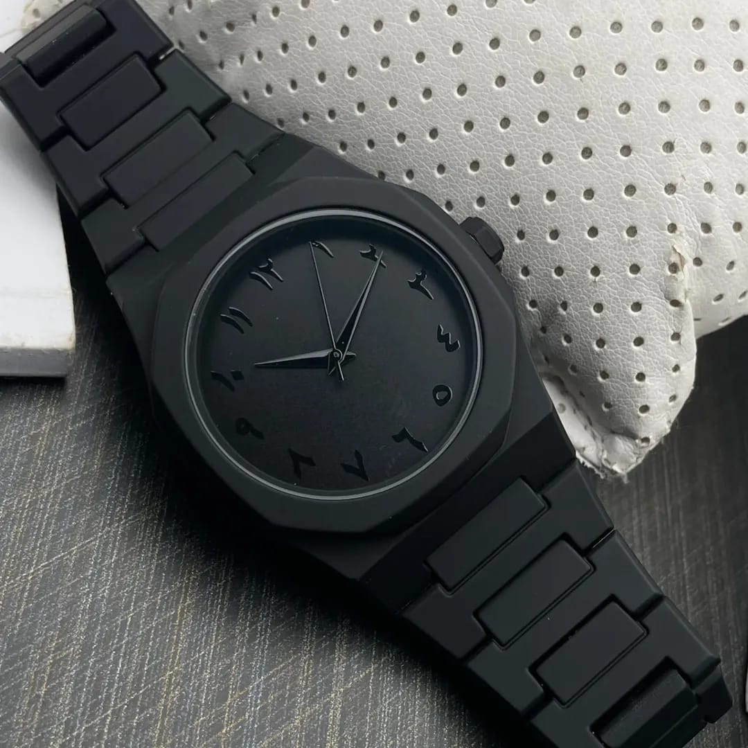 A bold black timepiece featuring sleek Arabic numerals, minimalist design, and premium build. Perfect for those who love a classic look with a modern twist — elegant, stylish, and built to stand out.